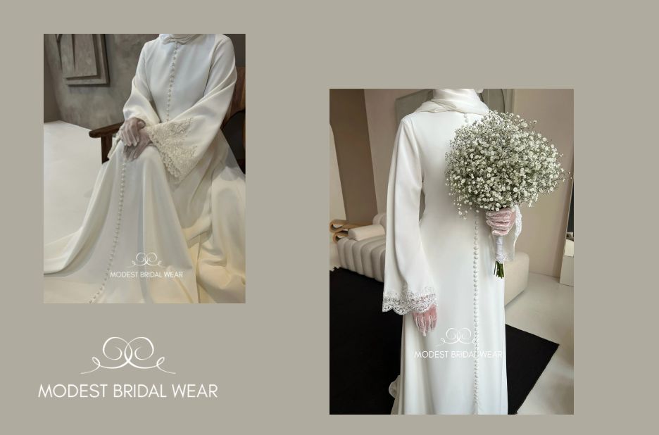The Modest bridal cape ameera adds a refined layer that complements modern gowns while nodding to timeless bridal tradition. For those seeking a softly radiant finish with a luxurious satin texture, this option can be a flattering choice that travels well across venue styles and weather conditions. MODEST BRIDAL WEAR